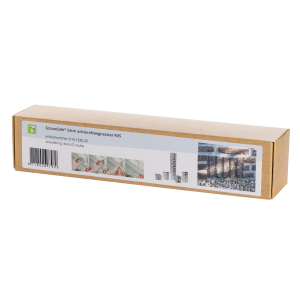 Retrofit vent grille in stainless steel. SpouwSafe is the universal solution for enhancing the facade and for protecting the cavity from pests and dirt. This vent grille prevents bees, wasps, rats, and mice from entering the cavity through the open joints.