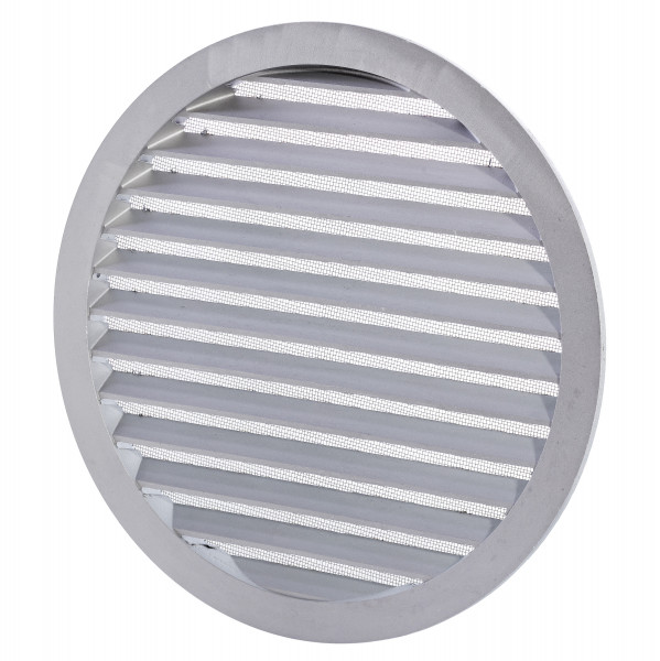 Strong round cast aluminum exterior wall grille for various ventilation applications, both for supply and exhaust of ventilation air.