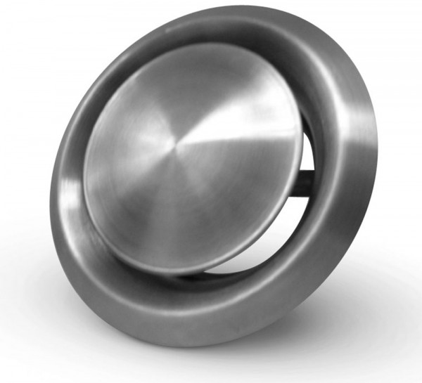 Beautiful stainless steel ventilation valves for the supply and exhaust of air. Suitable for duct mounting. The valve is made of brushed stainless steel, equipped with a mounting ring with clamp springs and screw holes. The air volume is easily adjustable.